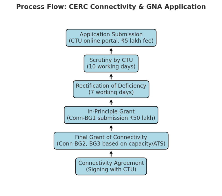 * In-Principle Grant: 45-60 days post-scrutiny, assessing ATS (Associated Transmission System) per Regulation 6 (CEA standards).